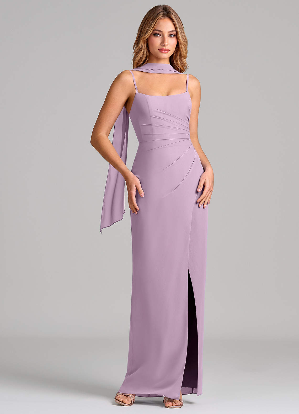 Wisteria Sheath Pleated Chiffon Dress