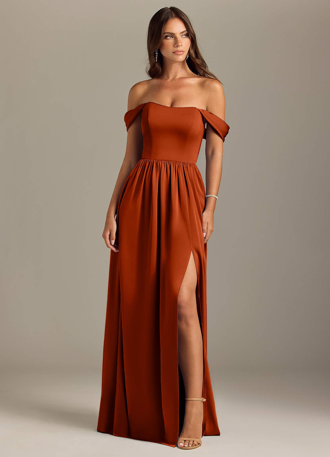 Paprika A-Line Off the Shoulder Stretch Satin Convertible Dress