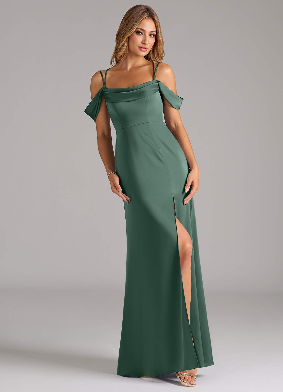 Eucalyptus A-Line Pleated Stretch Satin Convertible Dress