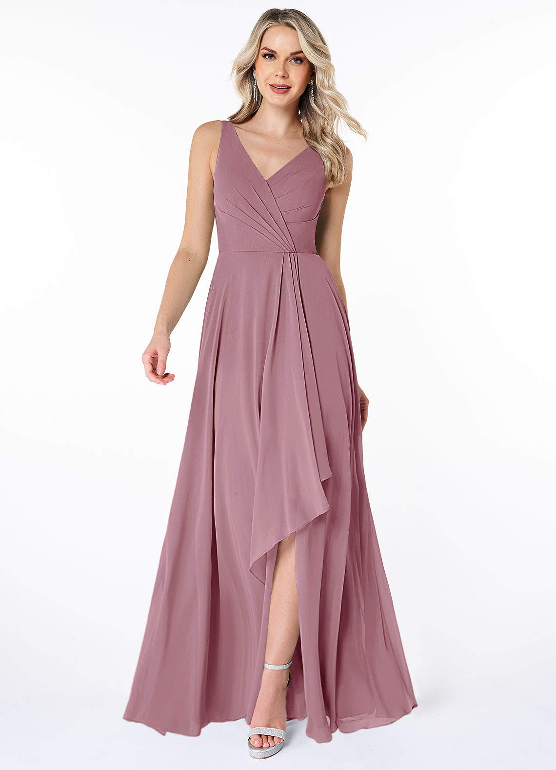 Vintage Mauve A-Line Ruched Chiffon Dress