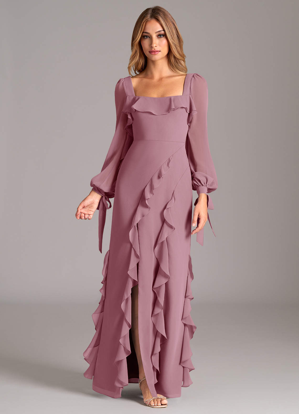Vintage Mauve A-Line Long Sleeve Chiffon Dress