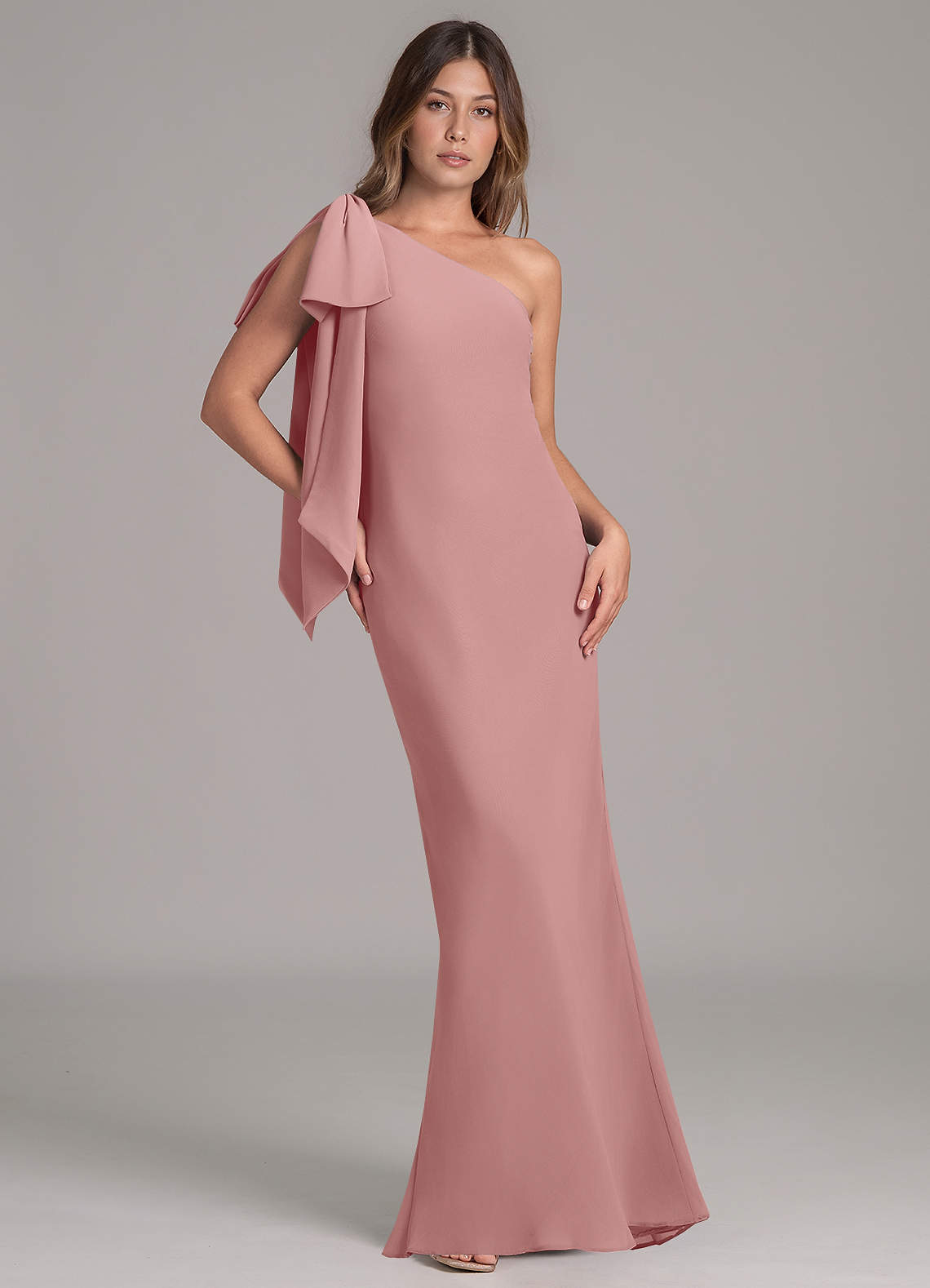 Dusty Rose A-Line One Shoulder Chiffon Dress