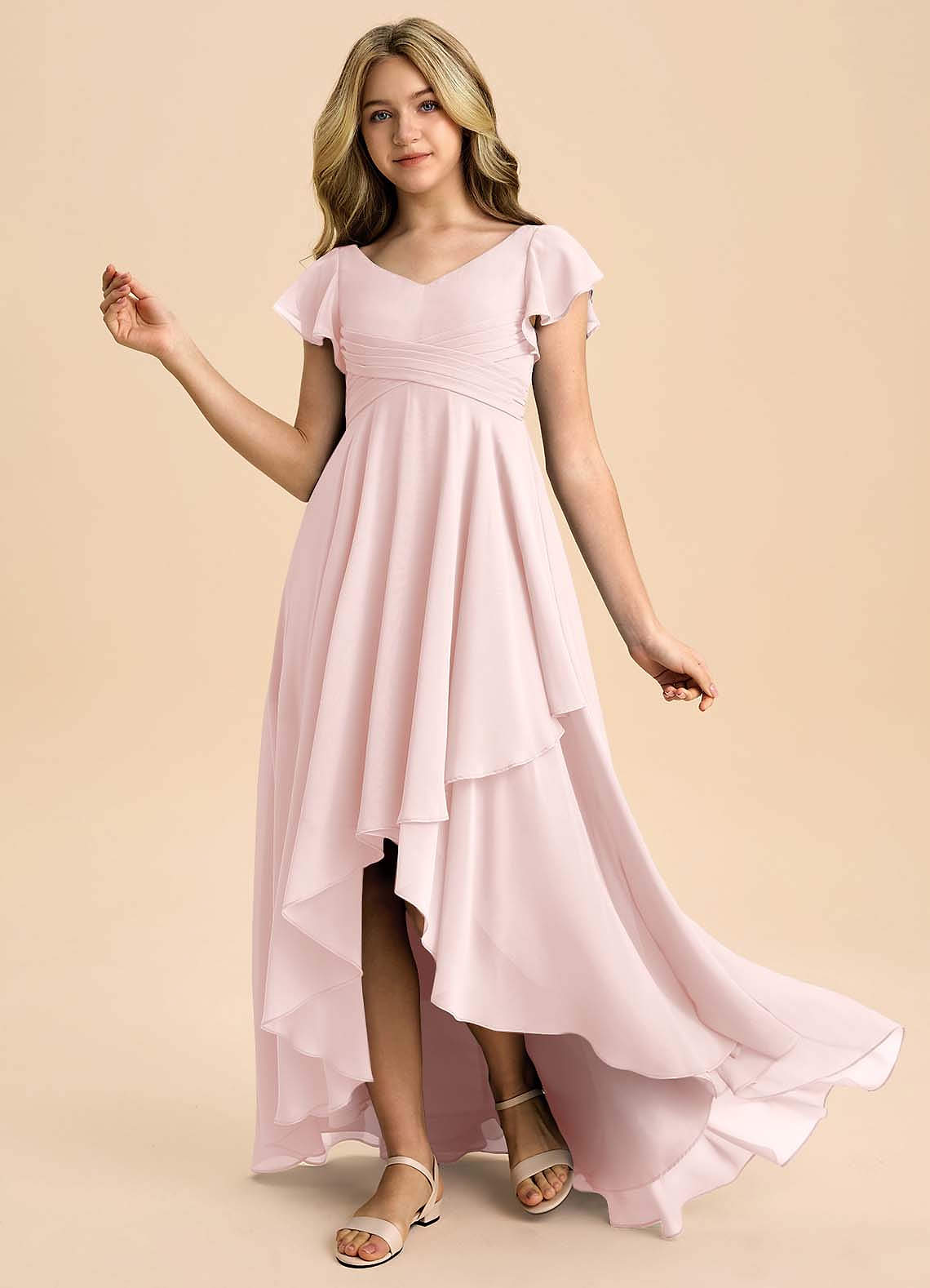 Blushing Pink A-Line Pleated Chiffon Dress