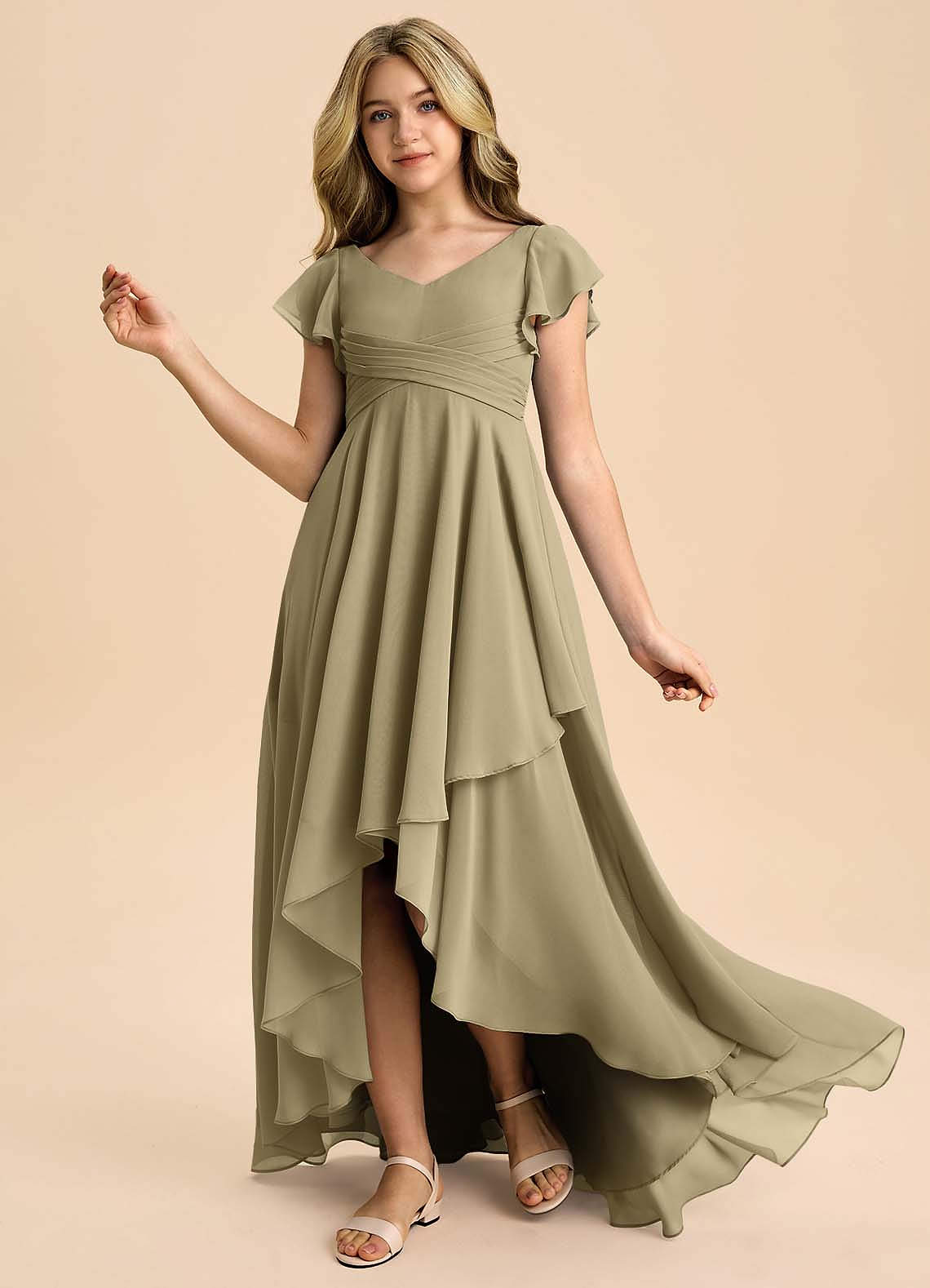 Moss Green A-Line Pleated Chiffon Dress