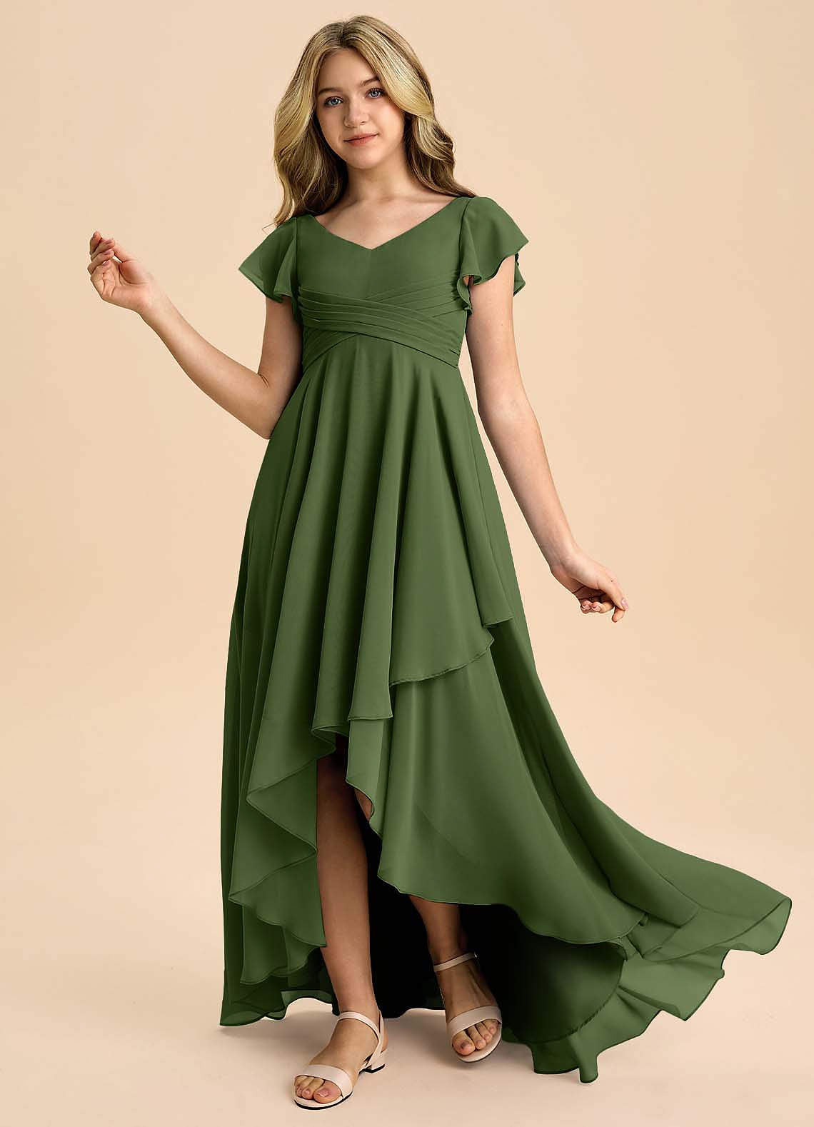Olive A-Line Pleated Chiffon Dress