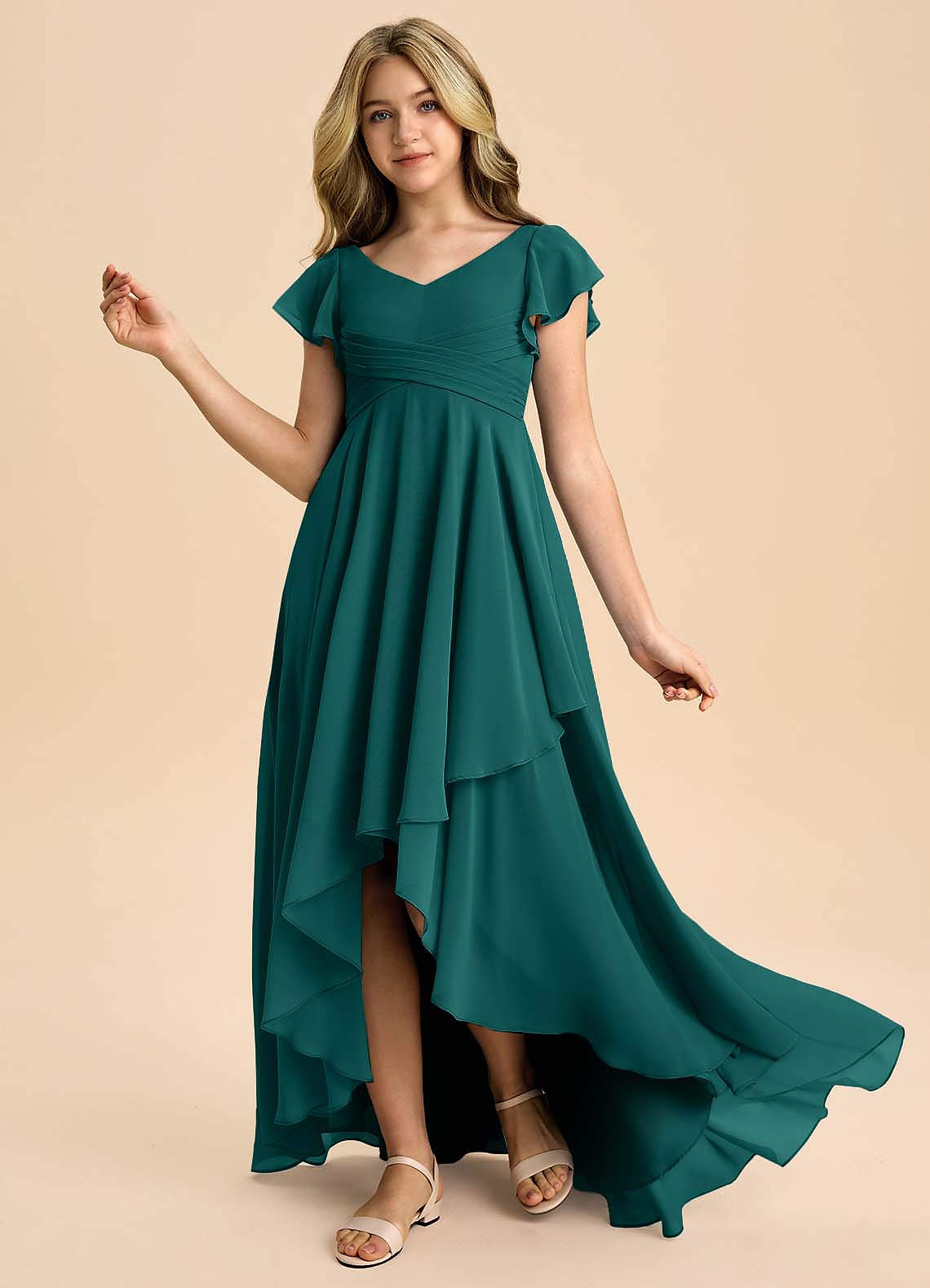 Peacock A-Line Pleated Chiffon Dress