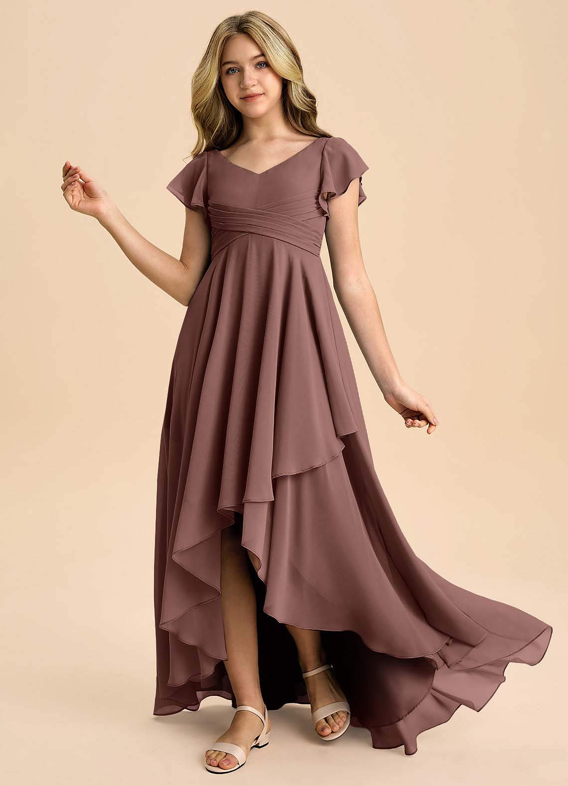Espresso A-Line Pleated Chiffon Dress