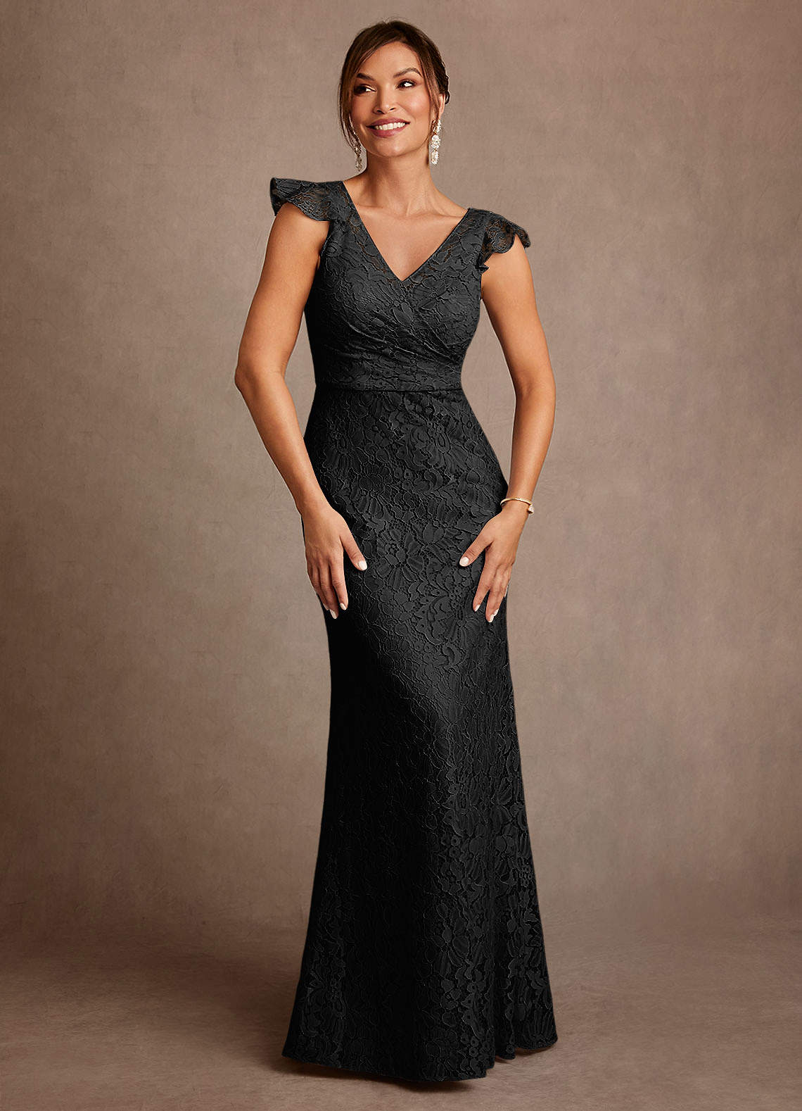 Black A-Line Pleated Lace Dress