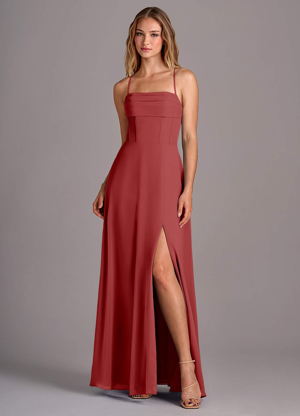 Rust A-Line Pleated Chiffon Dress
