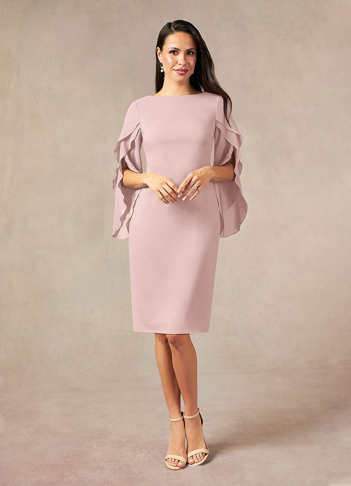 Dusty Rose Sheath Ruched Stretch Chiffon Dress