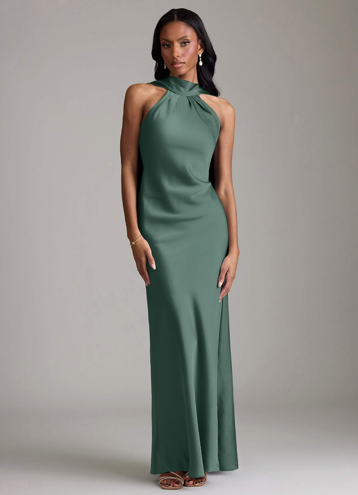 Eucalyptus Mermaid Pleated Stretch Satin Dress