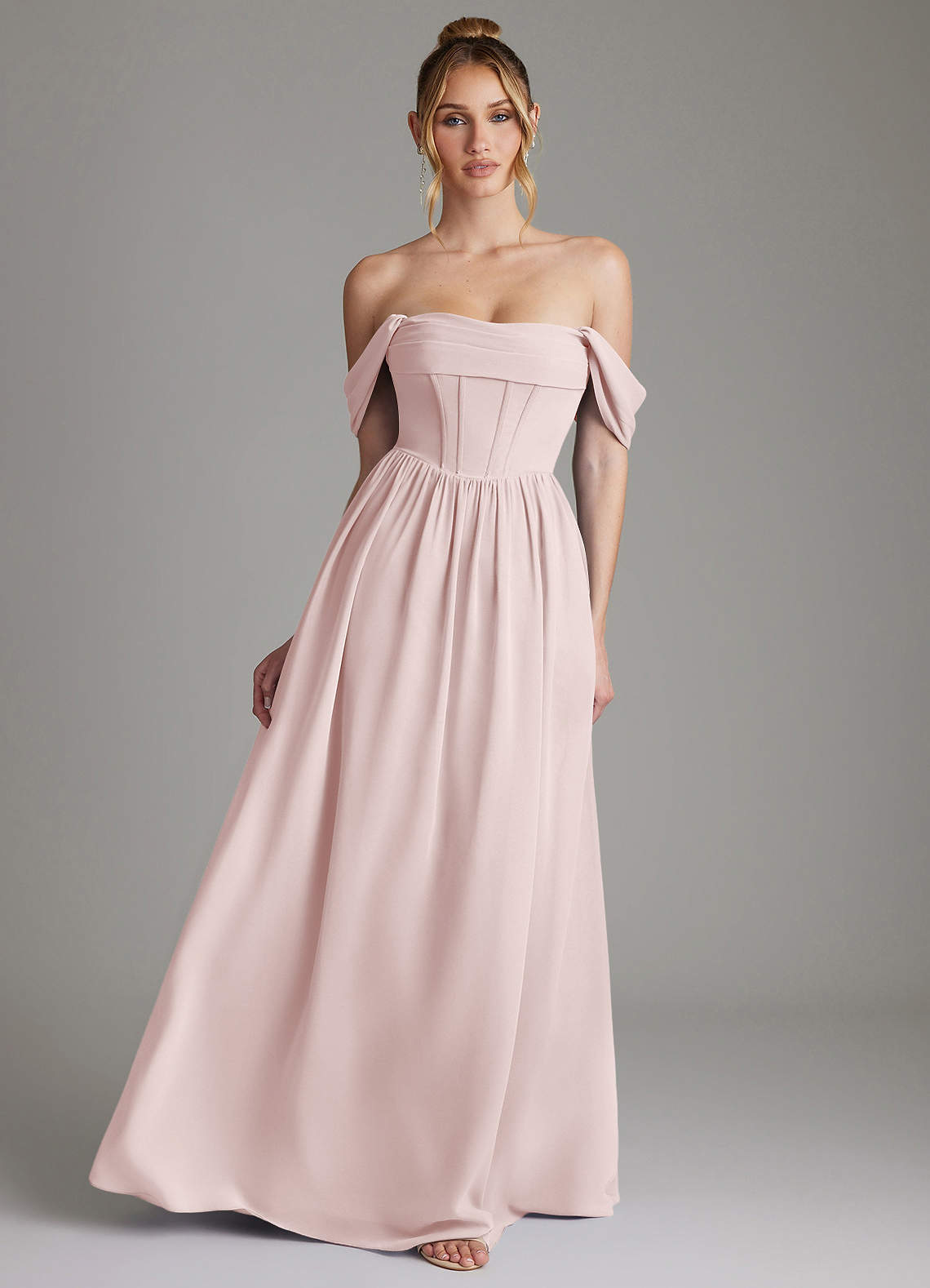 Blushing Pink A-Line Corset Chiffon Dress