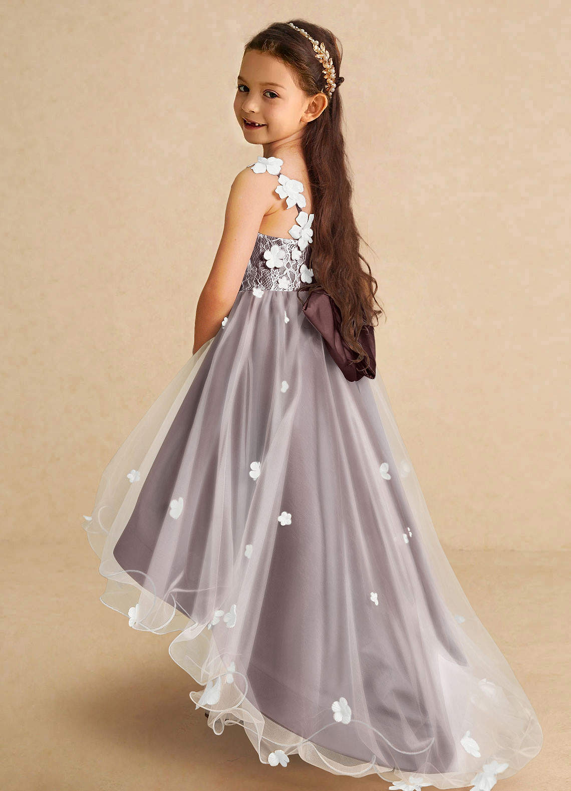 Espresso A-Line Lace Tulle Dress