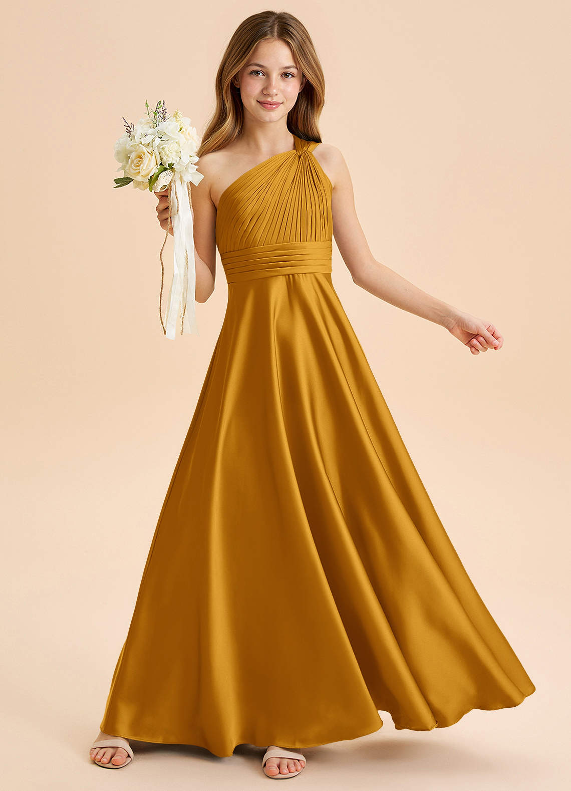Butterscotch A-Line Pleated Stretch Satin Dress