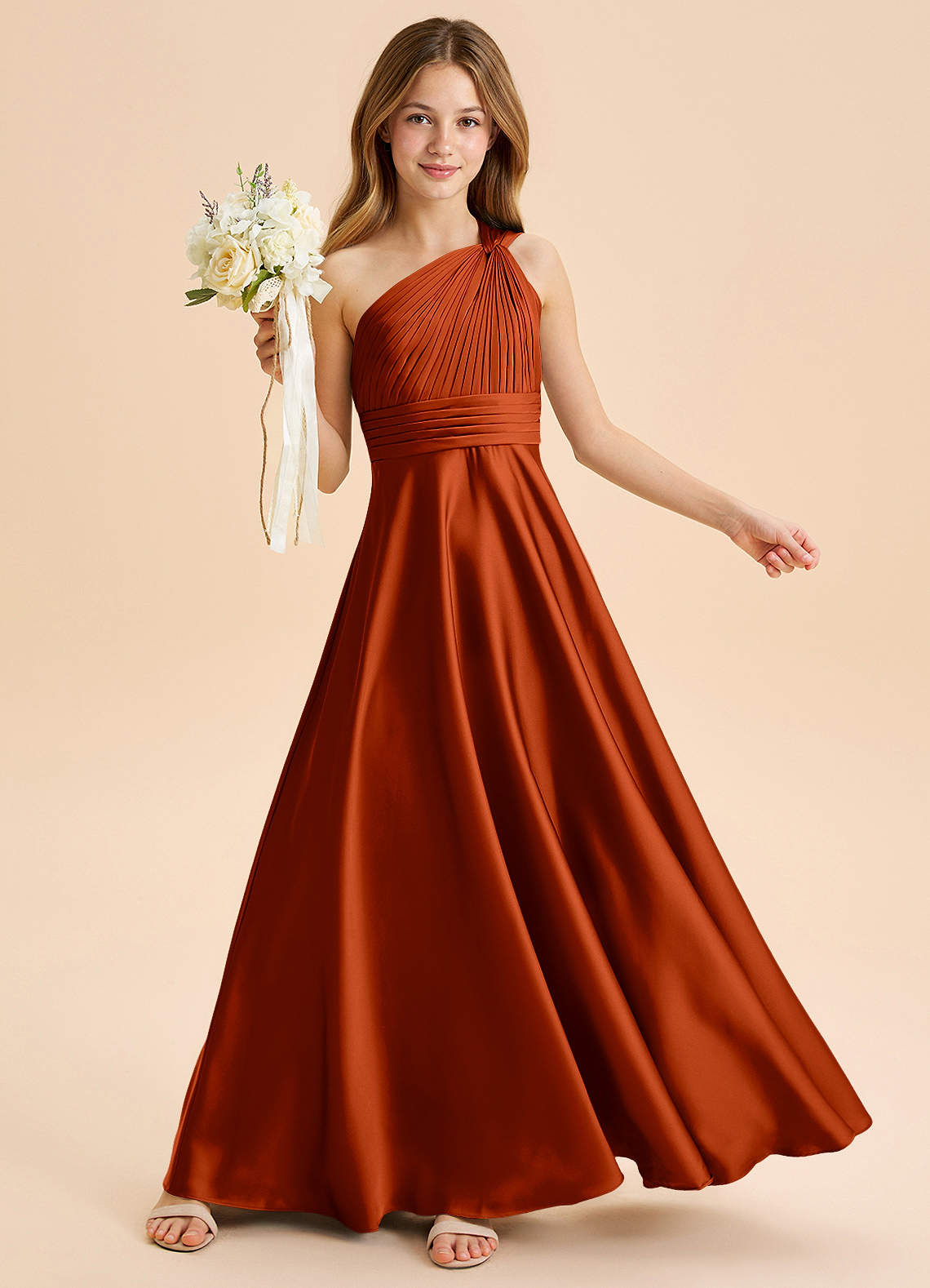 Paprika A-Line Pleated Stretch Satin Dress
