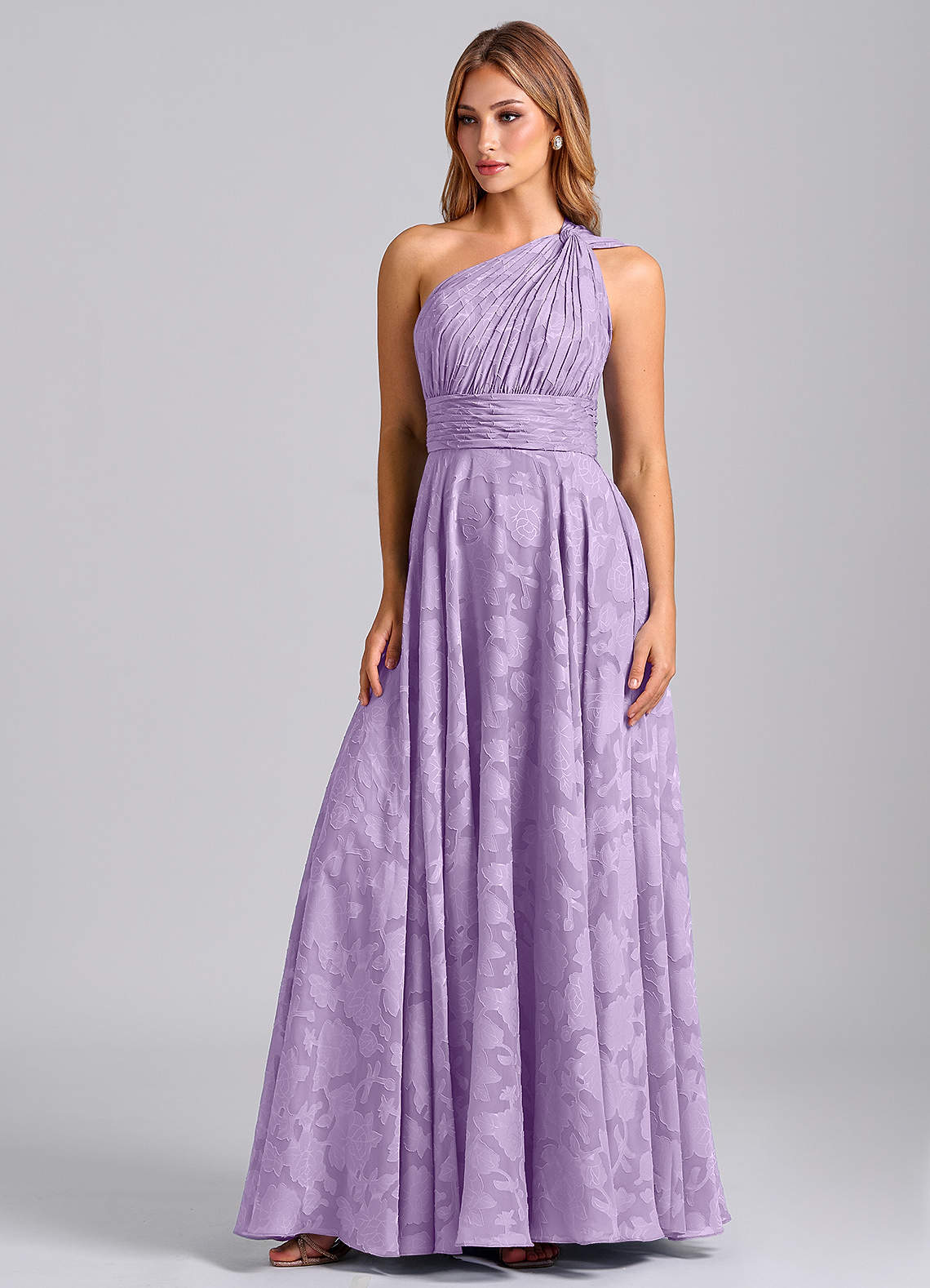 Lilac A-Line One Shoulder Floral Burnout Dress