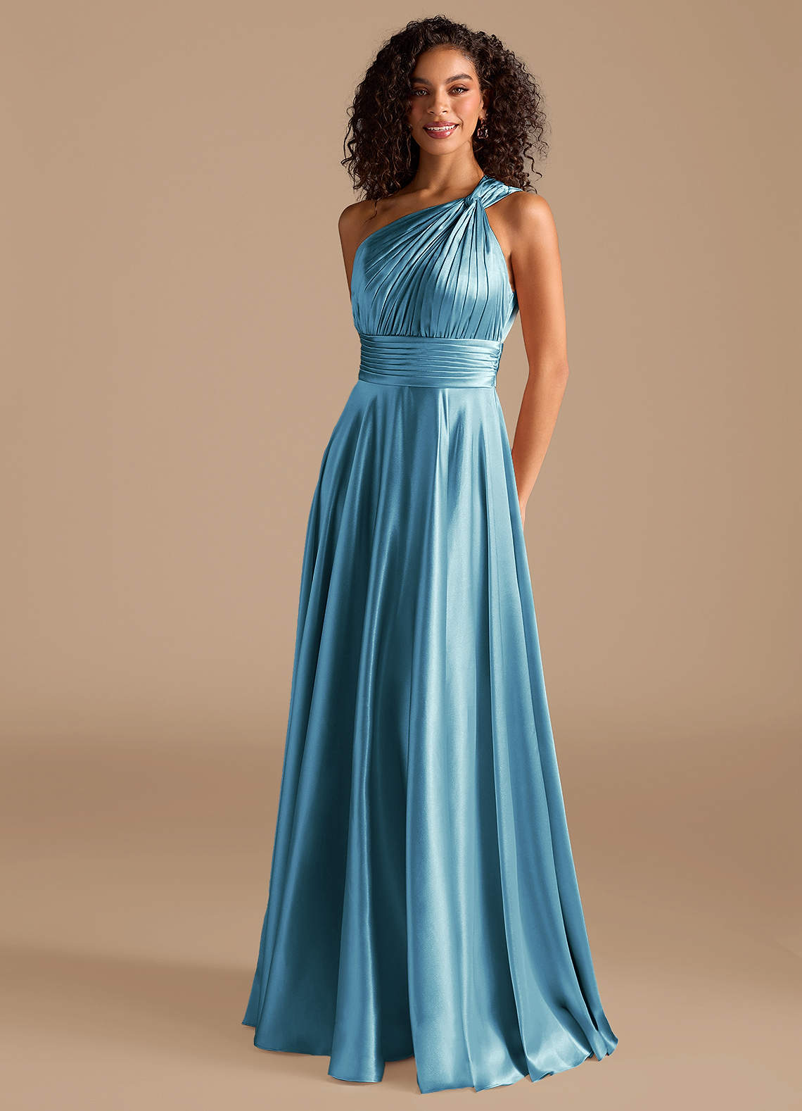 Steel Blue A-Line One Shoulder Metallic Satin Dress