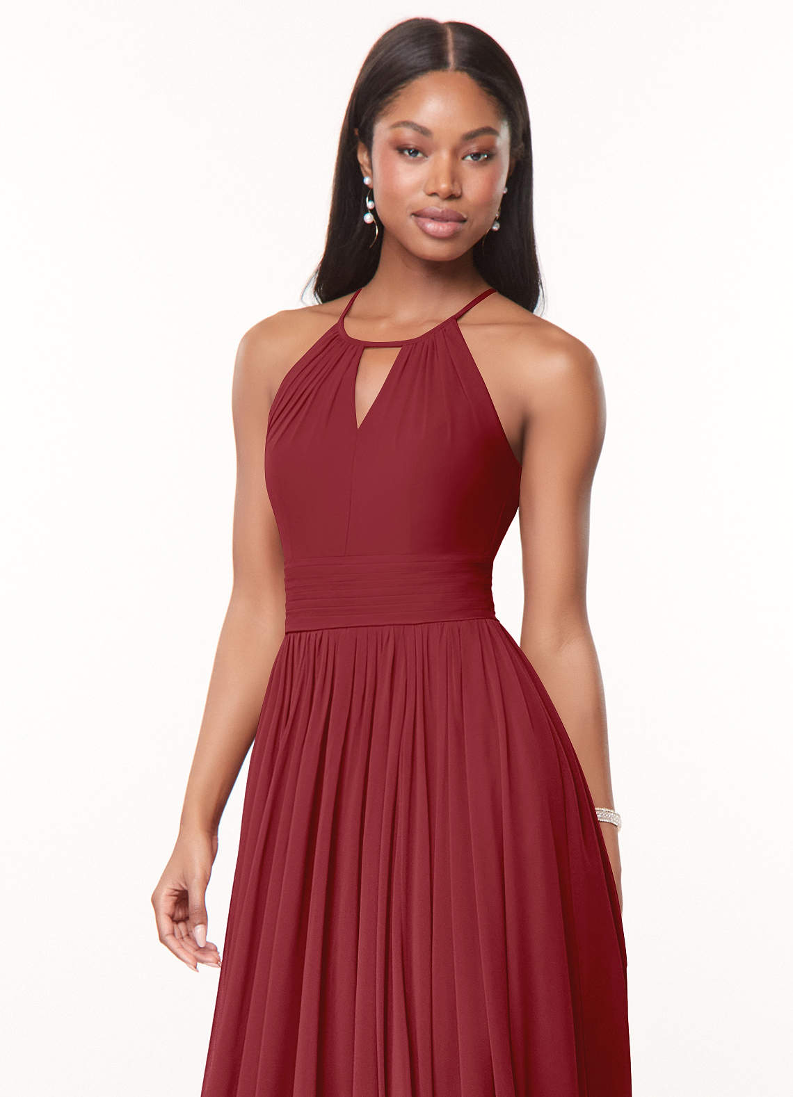 Azazie Cherish Bridesmaid Dresses Pomegranate A-Line Pleated Chiffon Dress image1