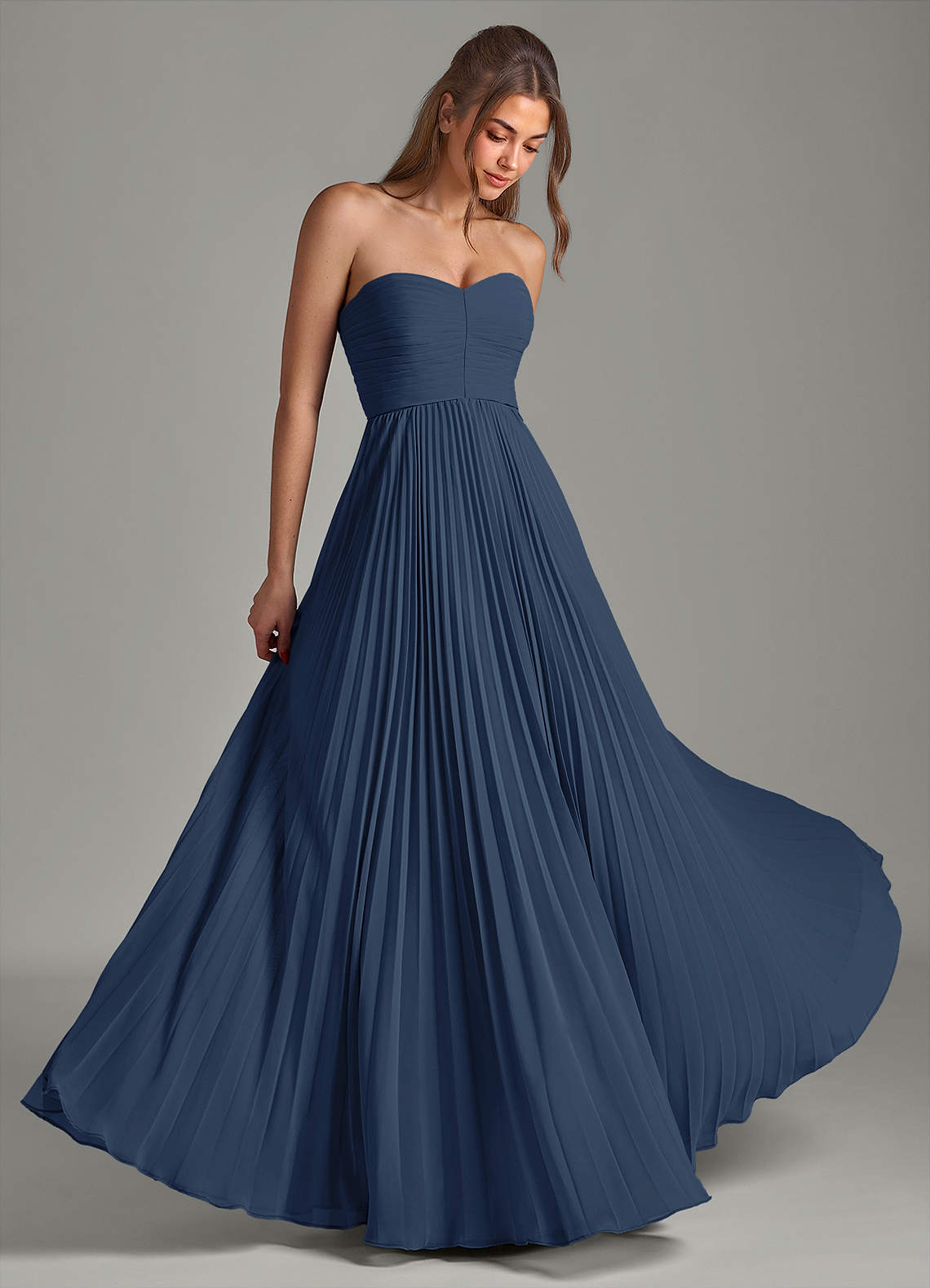 Dark Navy A-Line Strapless Chiffon Dress