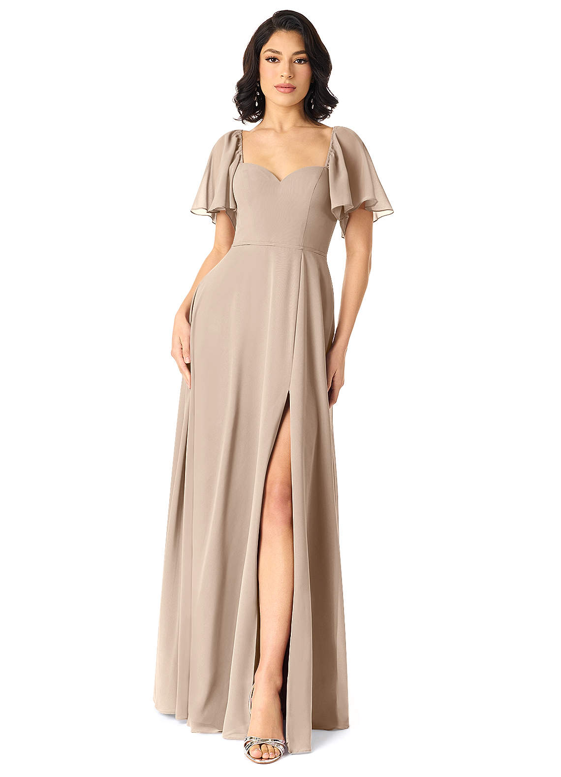 Taupe A-Line Sweetheart Neckline Chiffon Dress