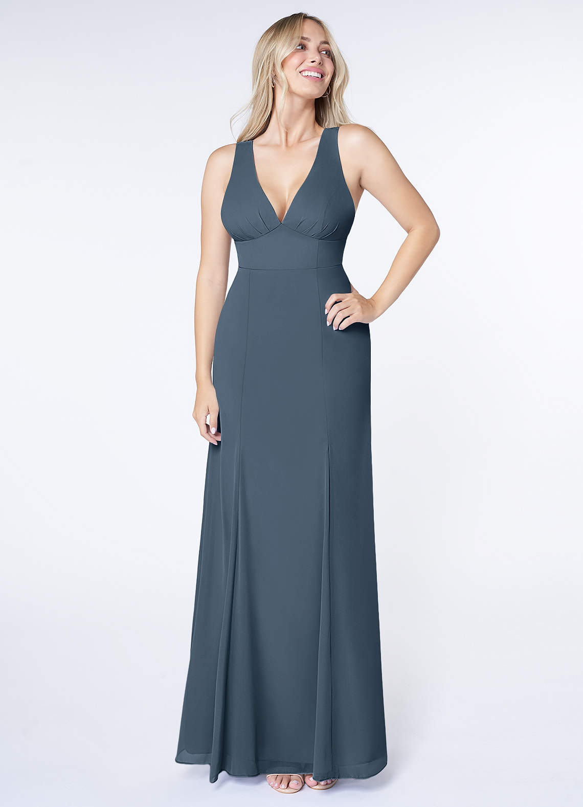 Neptune A-Line V-Neck Pleated Chiffon Dress