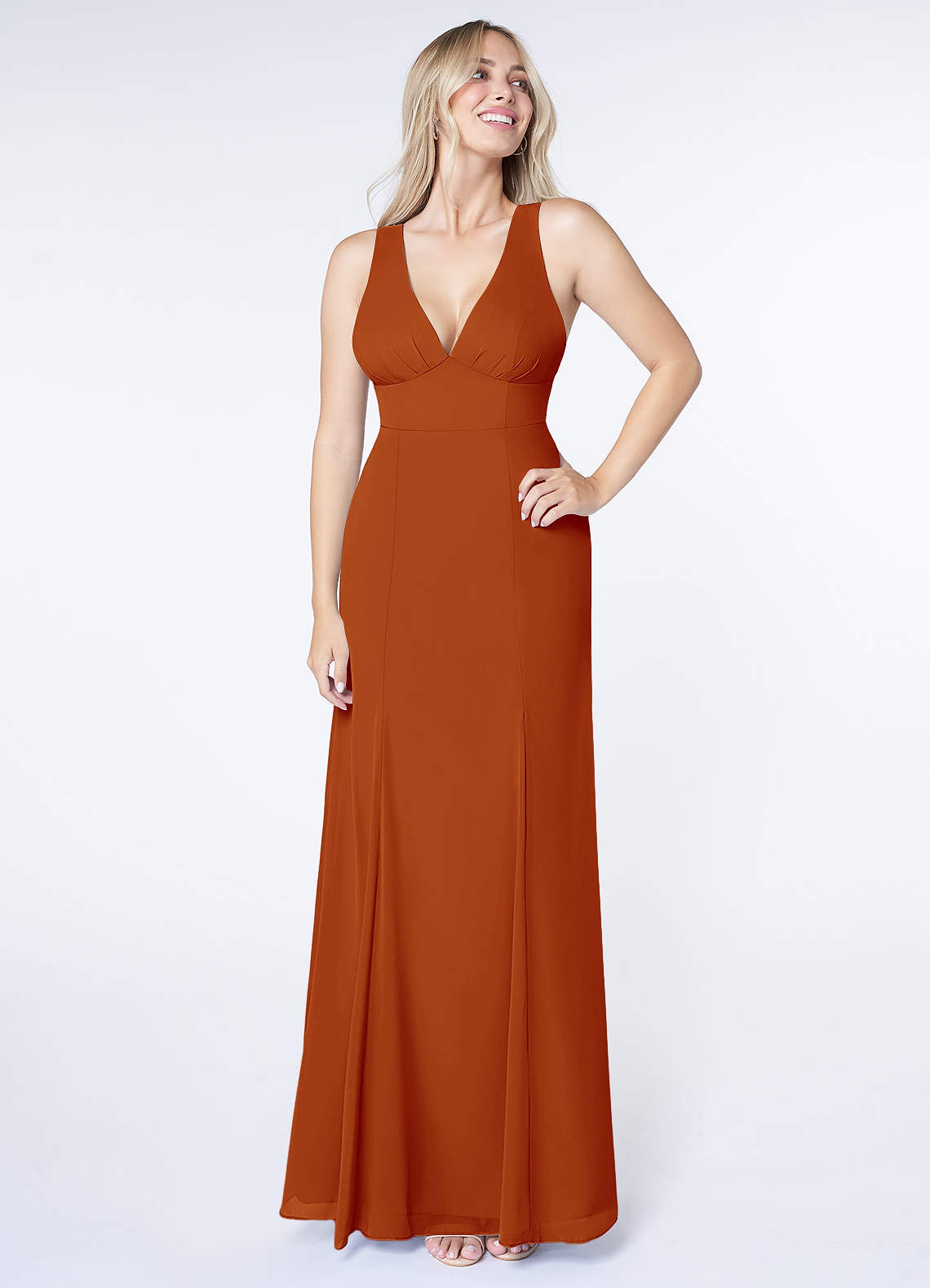 Paprika A-Line V-Neck Pleated Chiffon Dress
