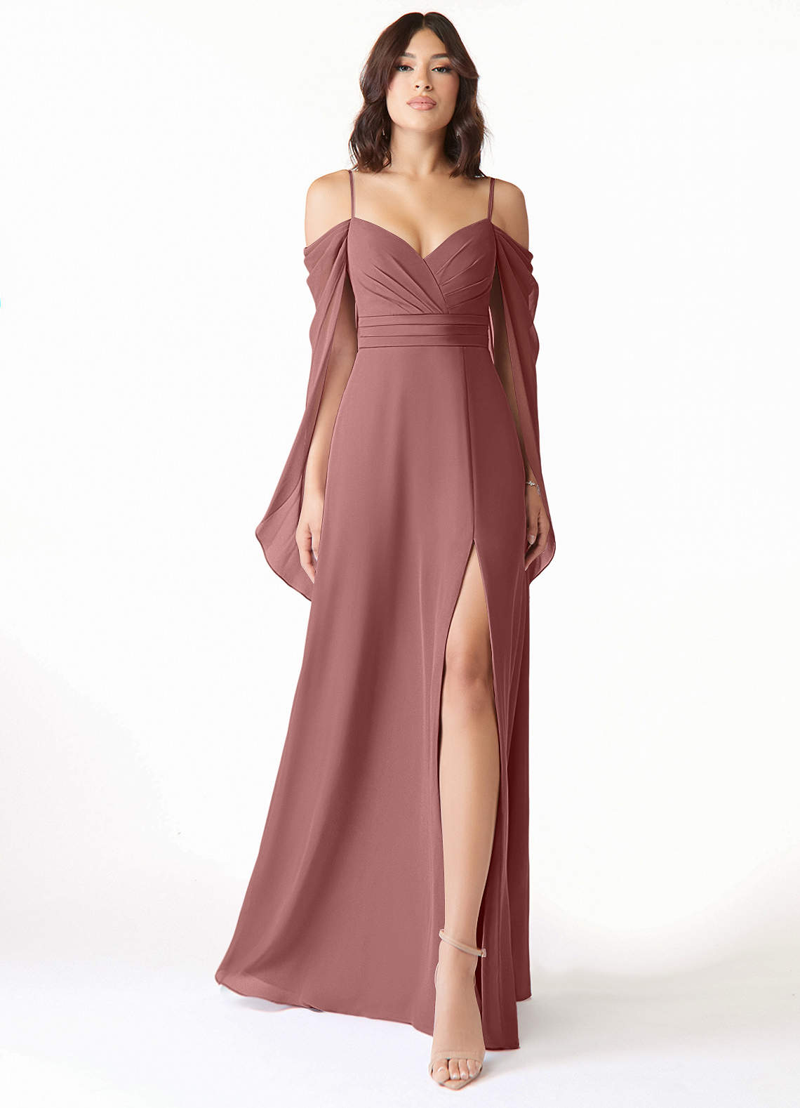 Desert Rose A-Line Long Sleeve Chiffon Dress