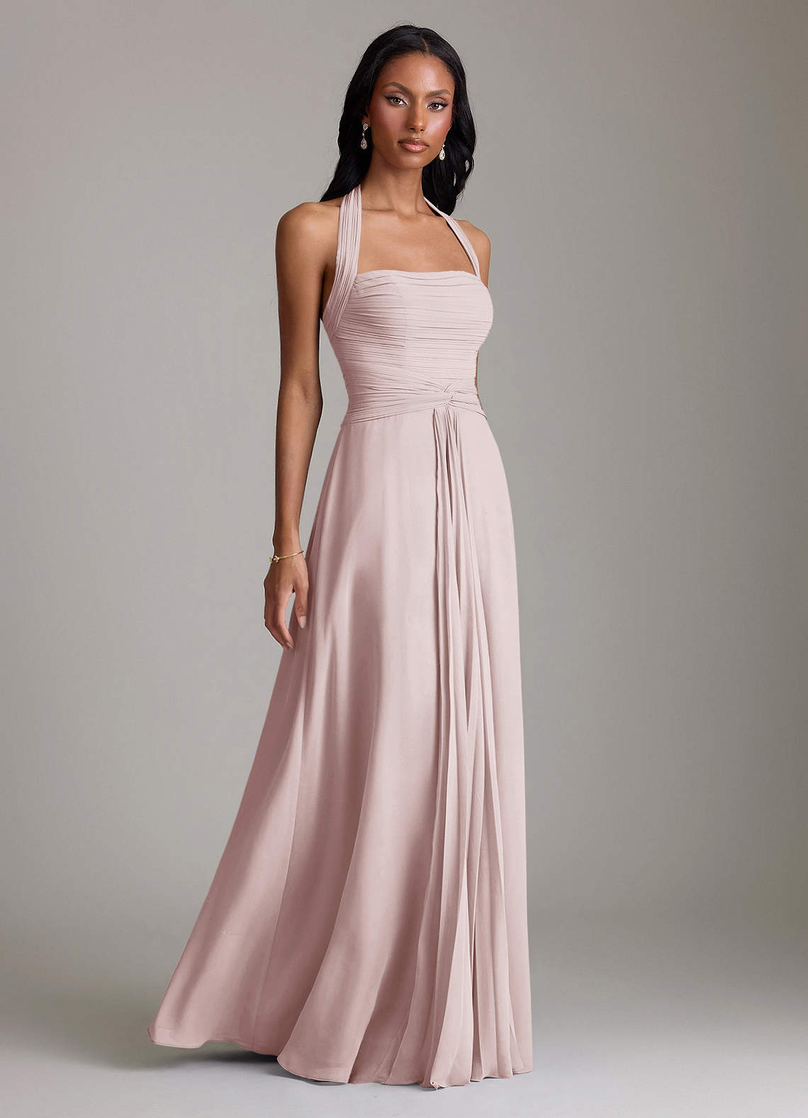 Blushing Pink A-Line Pleated Chiffon Dress