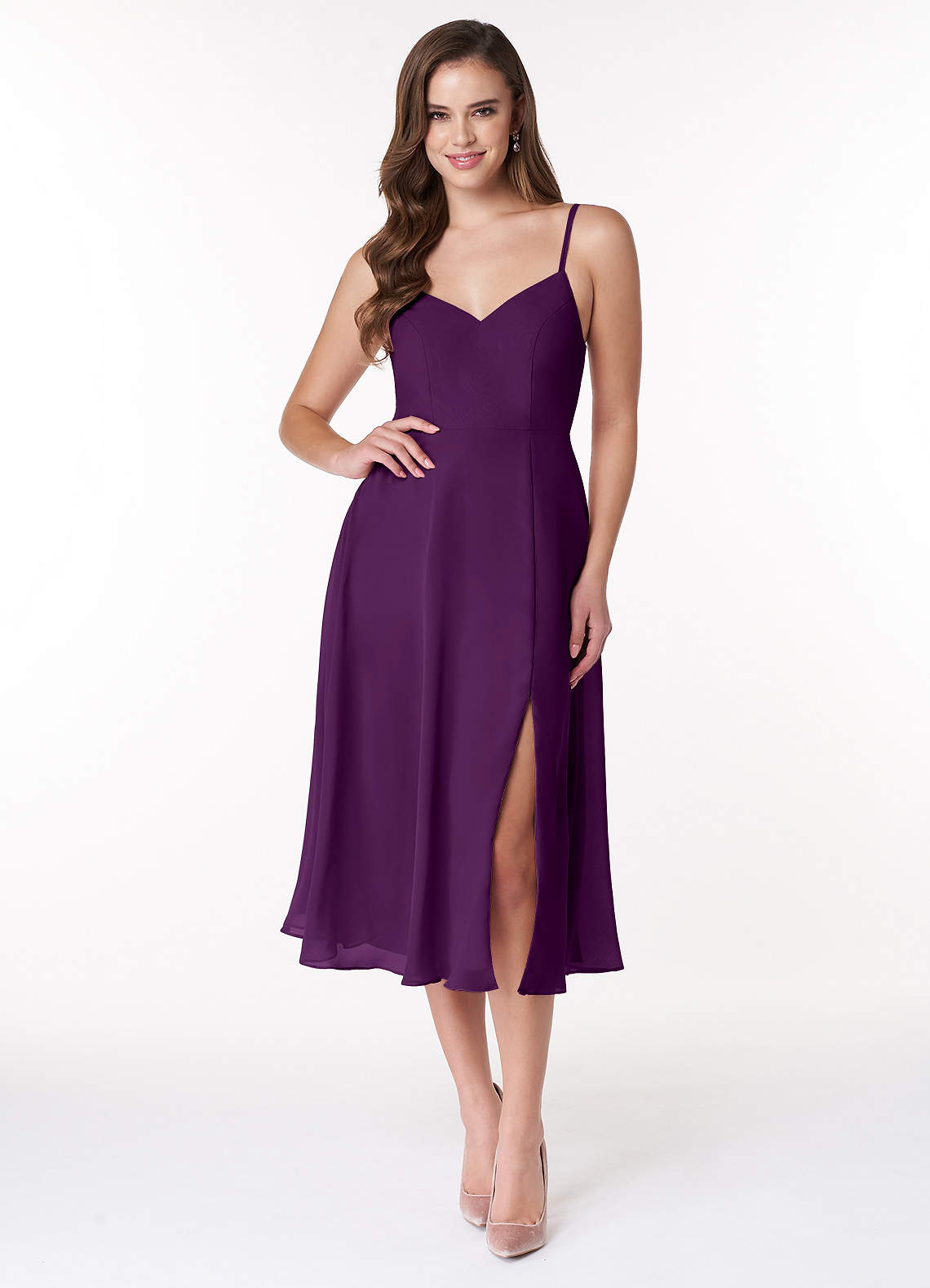 Grape A-Line V-Neck Chiffon Dress
