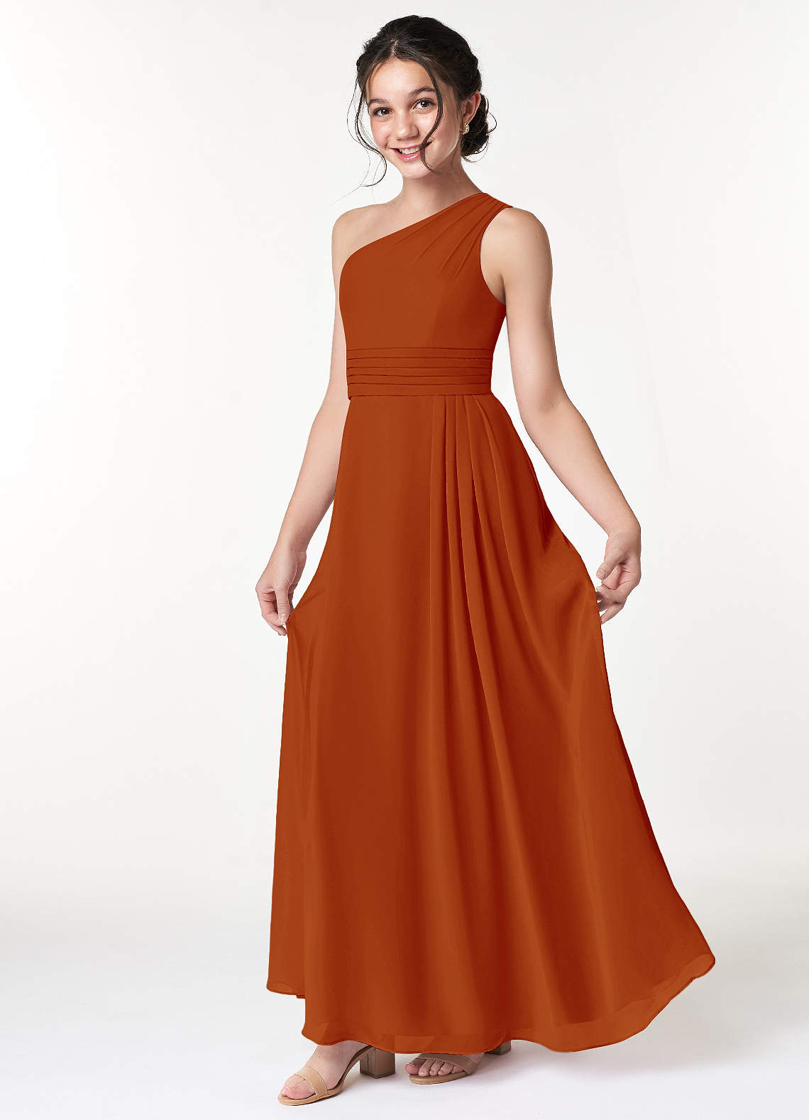 Paprika A-Line Pleated Chiffon Dress