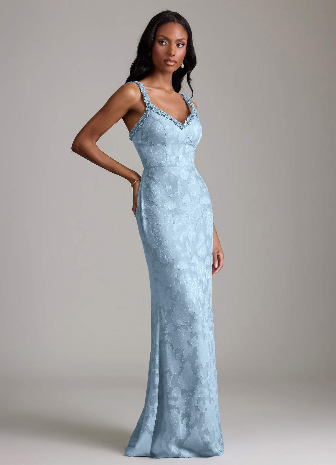 Sky Blue Mermaid Ruched Floral Burnout Dress