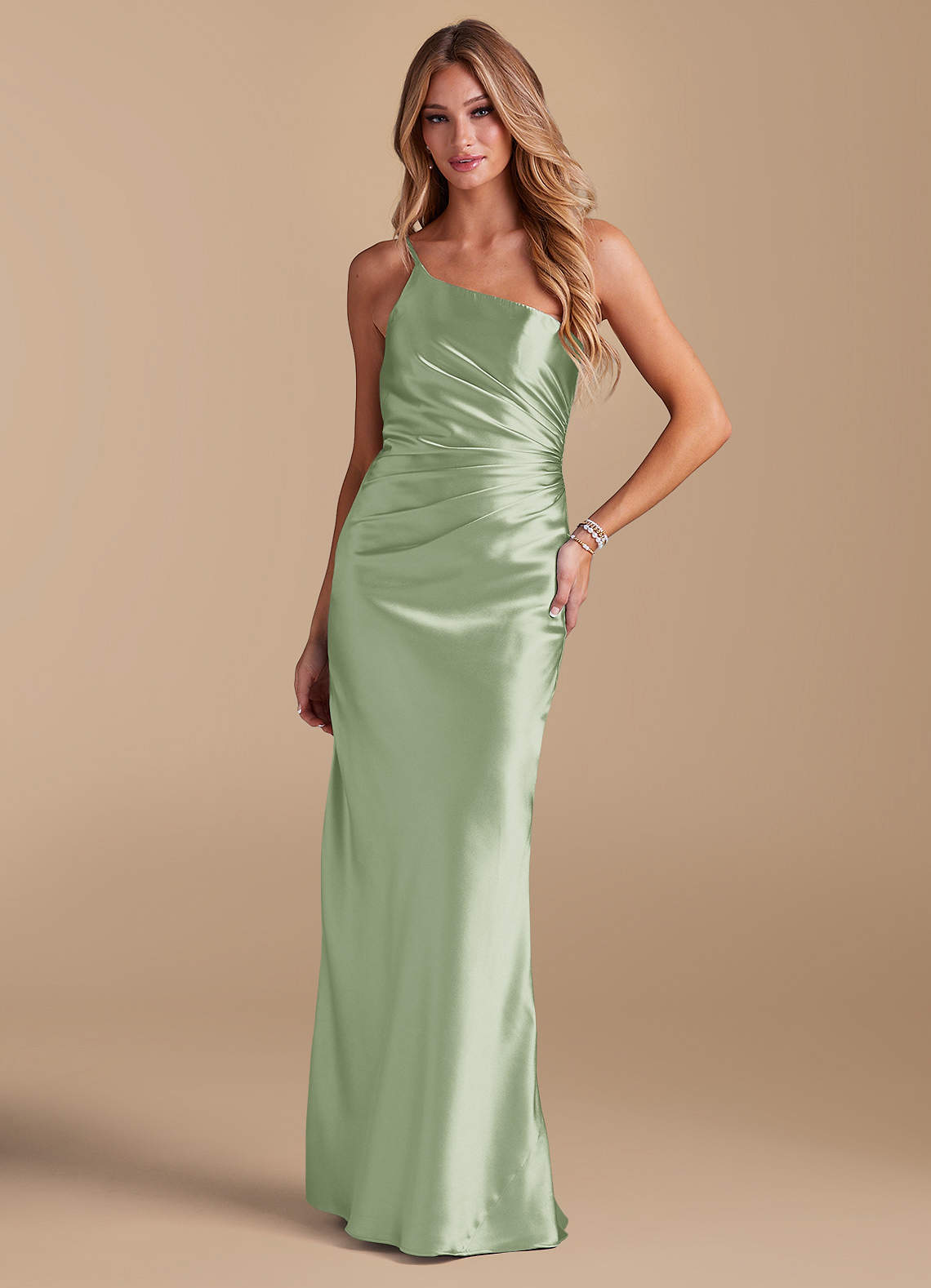 Champagne Mermaid One Shoulder Metallic Satin Dress