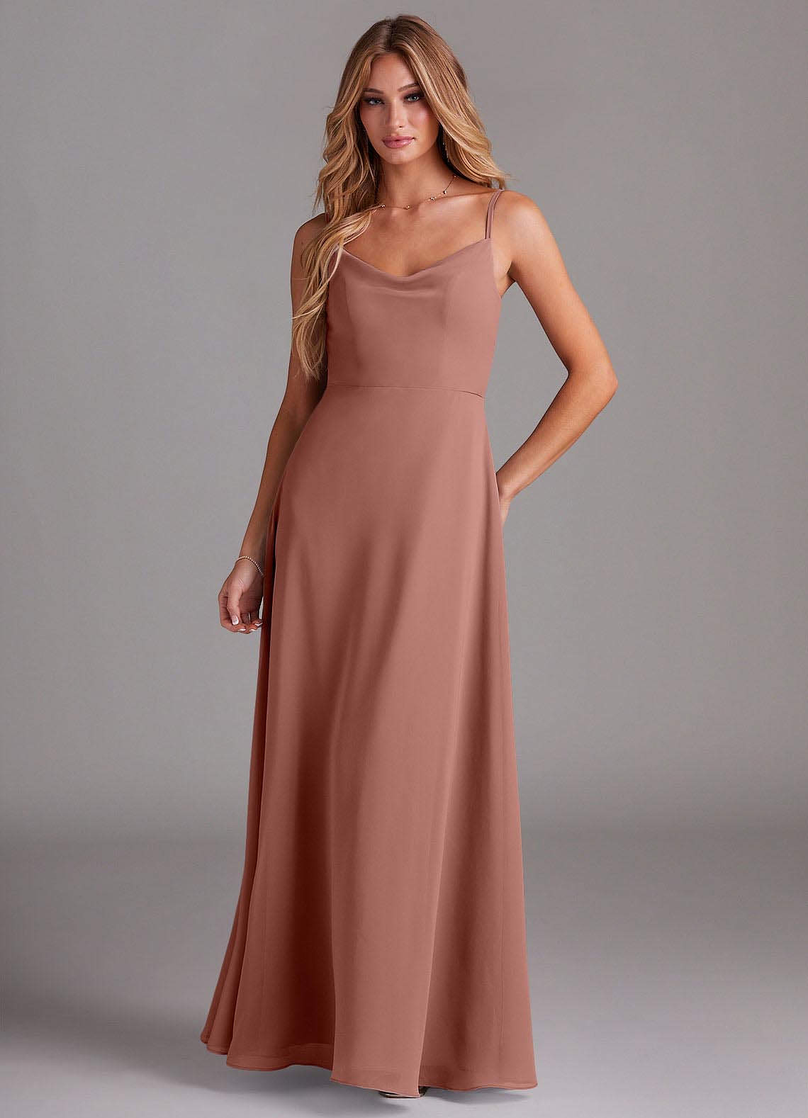 Cedar Rose A-Line Cowl Chiffon Dress