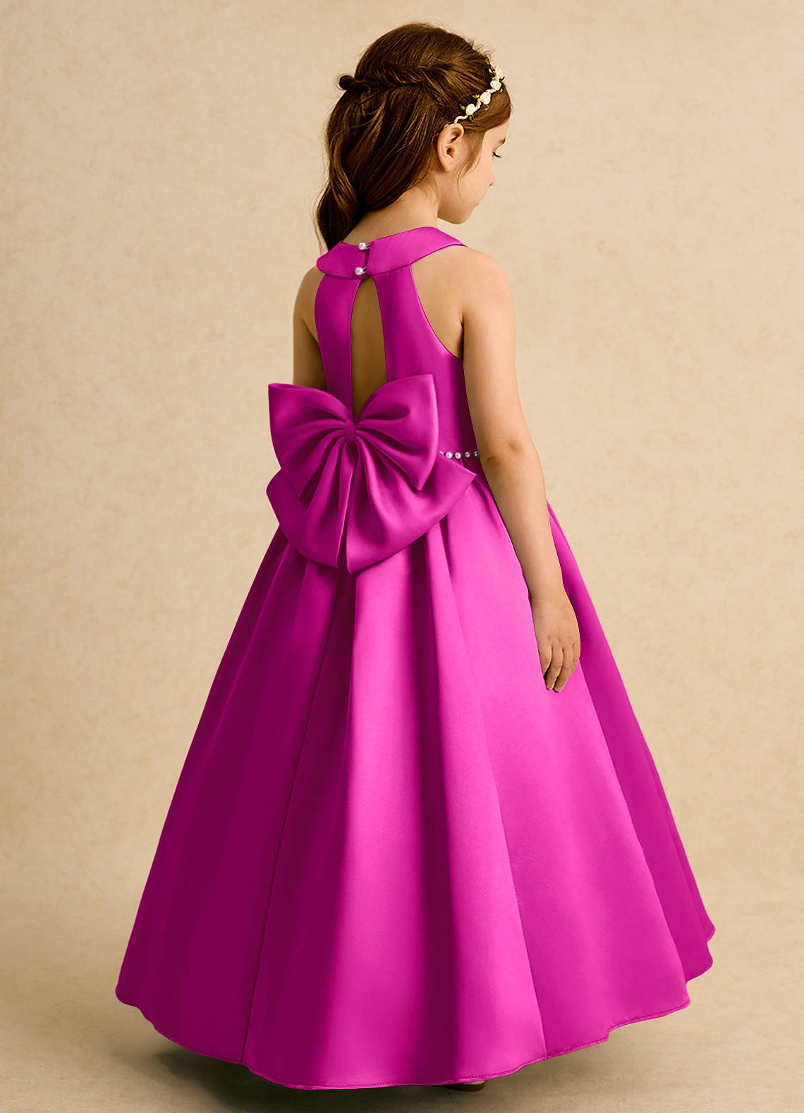 Fuchsia Ball-Gown Bow Matte Satin Dress