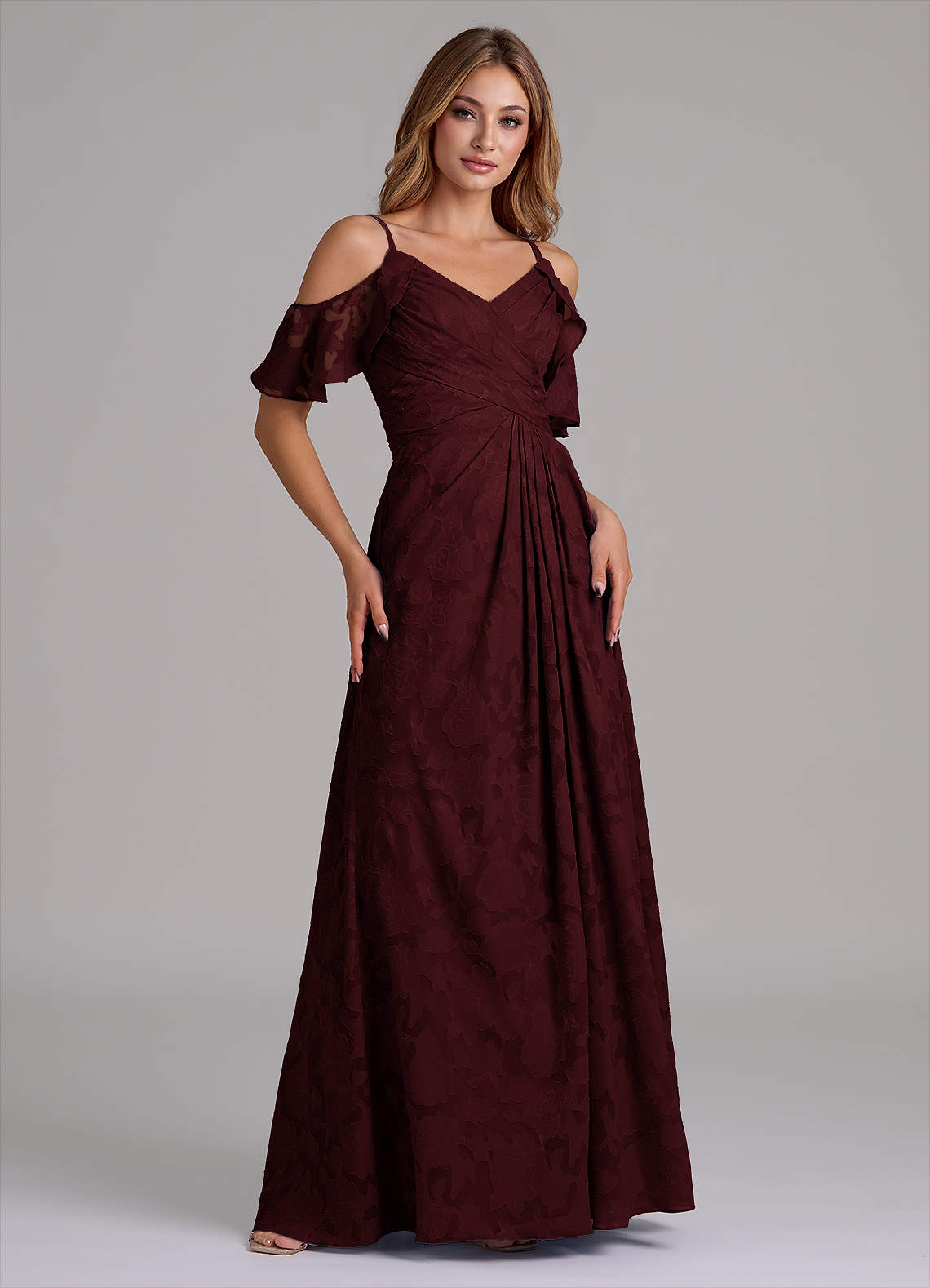 Cabernet A-Line Off the Shoulder Floral Burnout Dress