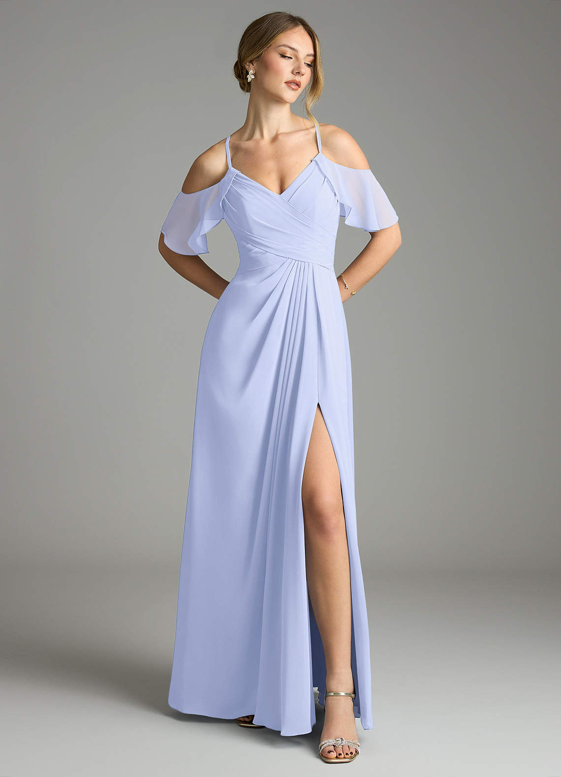 Lavender A-Line V-Neck Pleated Chiffon Dress