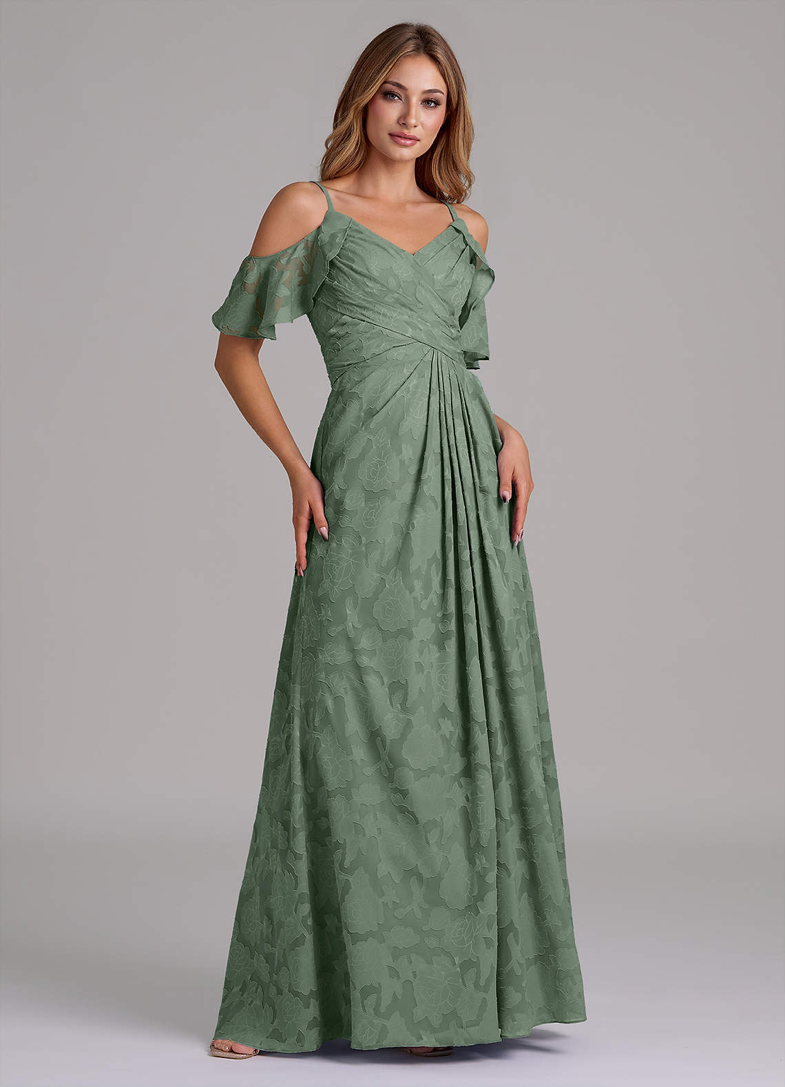 Matcha A-Line Off the Shoulder Floral Burnout Dress