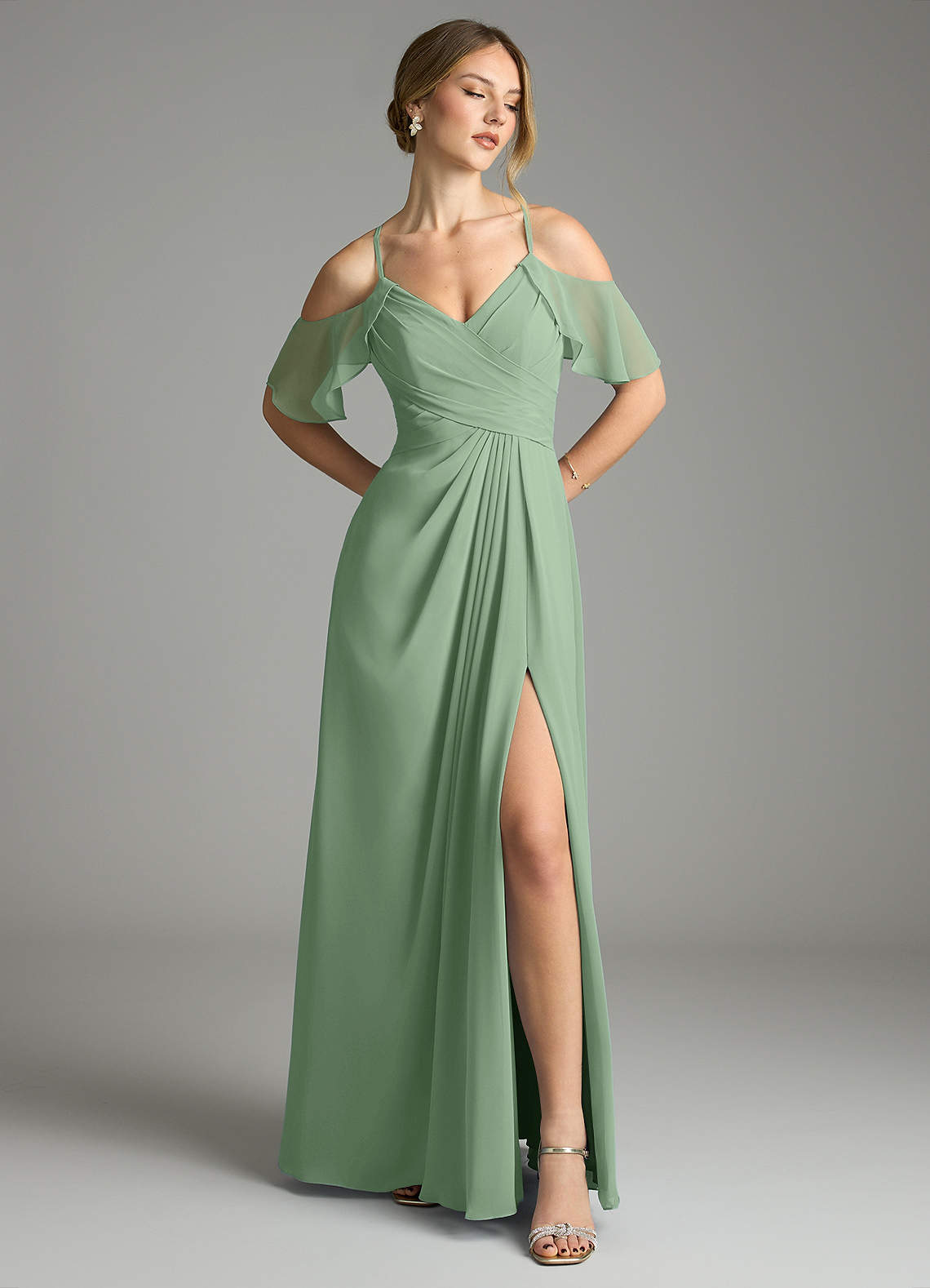 Matcha A-Line V-Neck Pleated Chiffon Dress
