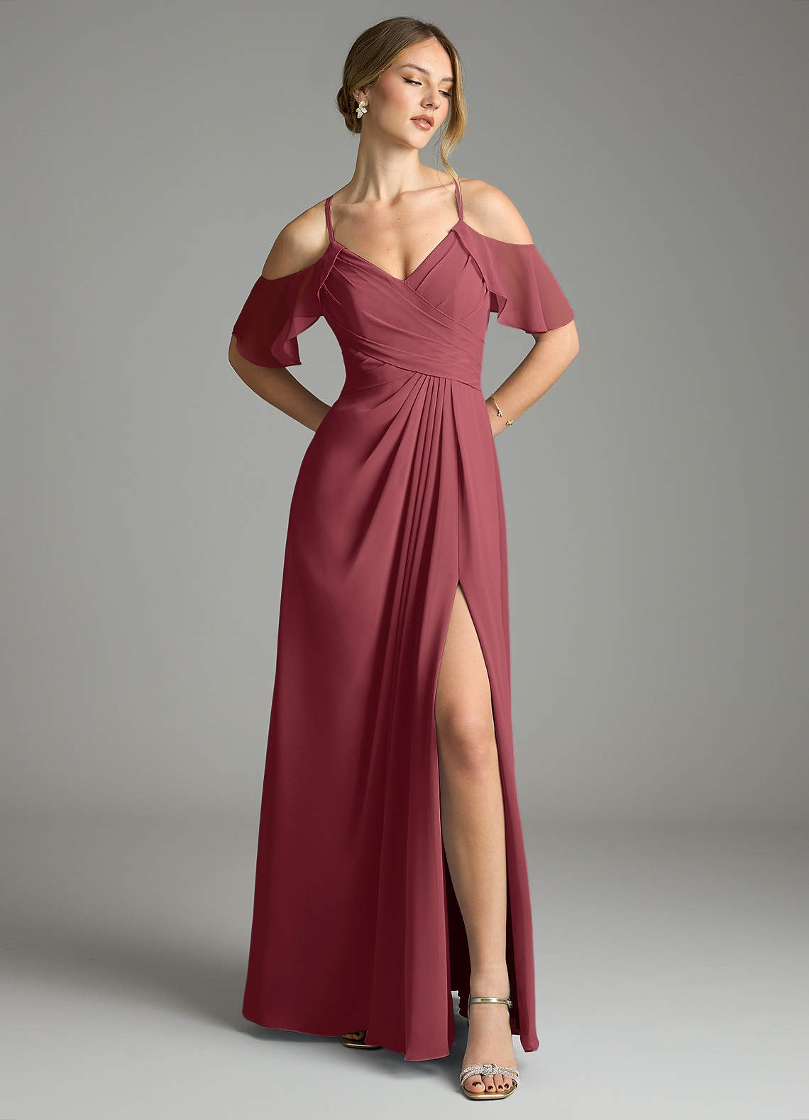 Merlot A-Line V-Neck Pleated Chiffon Dress