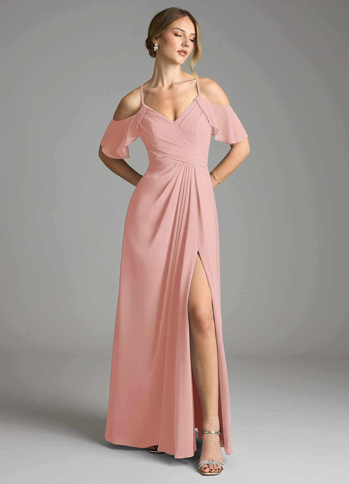 Rosette A-Line V-Neck Pleated Chiffon Dress