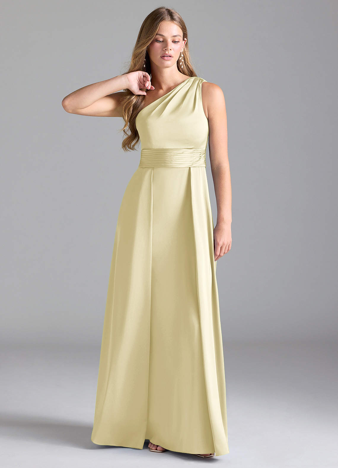 Lemon Sorbet A-Line One Shoulder Stretch Satin Dress