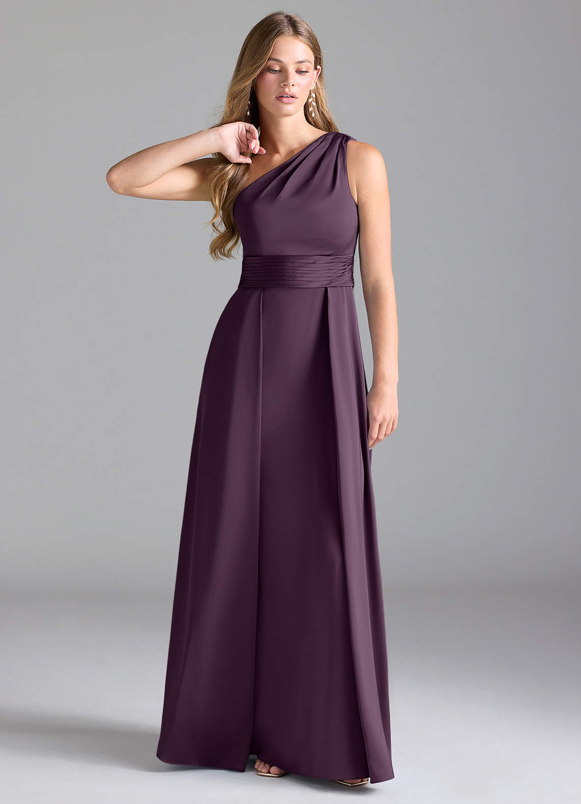 Plum A-Line One Shoulder Stretch Satin Dress