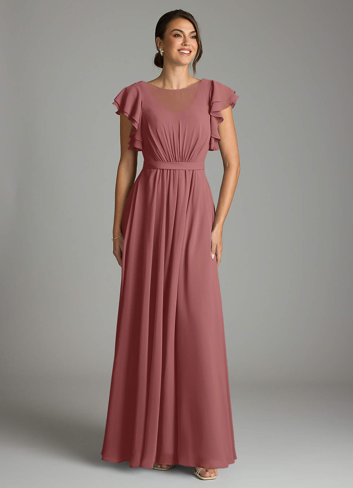 A-Line Ruffled Chiffon Floor-Length Dress Amethyst