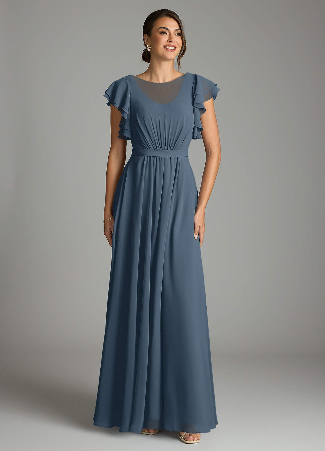 A-Line Ruffled Chiffon Floor-Length Dress Neptune