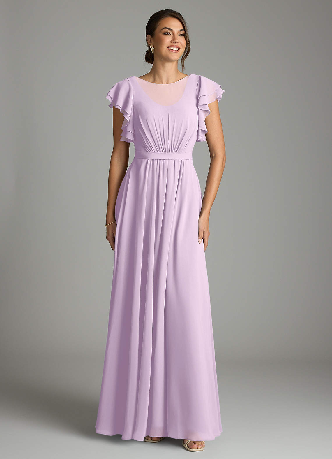 A-Line Ruffled Chiffon Floor-Length Dress Frosted Lilac