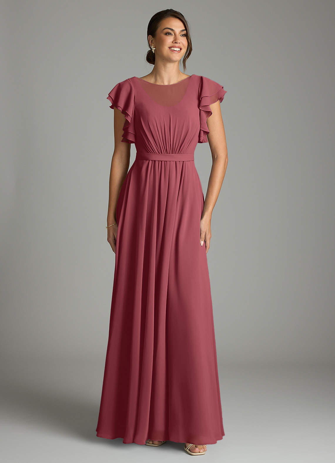 A-Line Ruffled Chiffon Floor-Length Dress Merlot