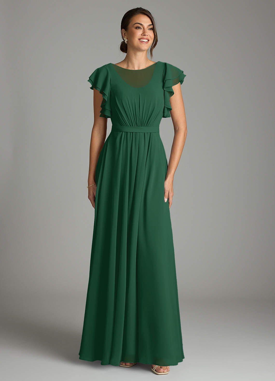 A-Line Ruffled Chiffon Floor-Length Dress Dark Green