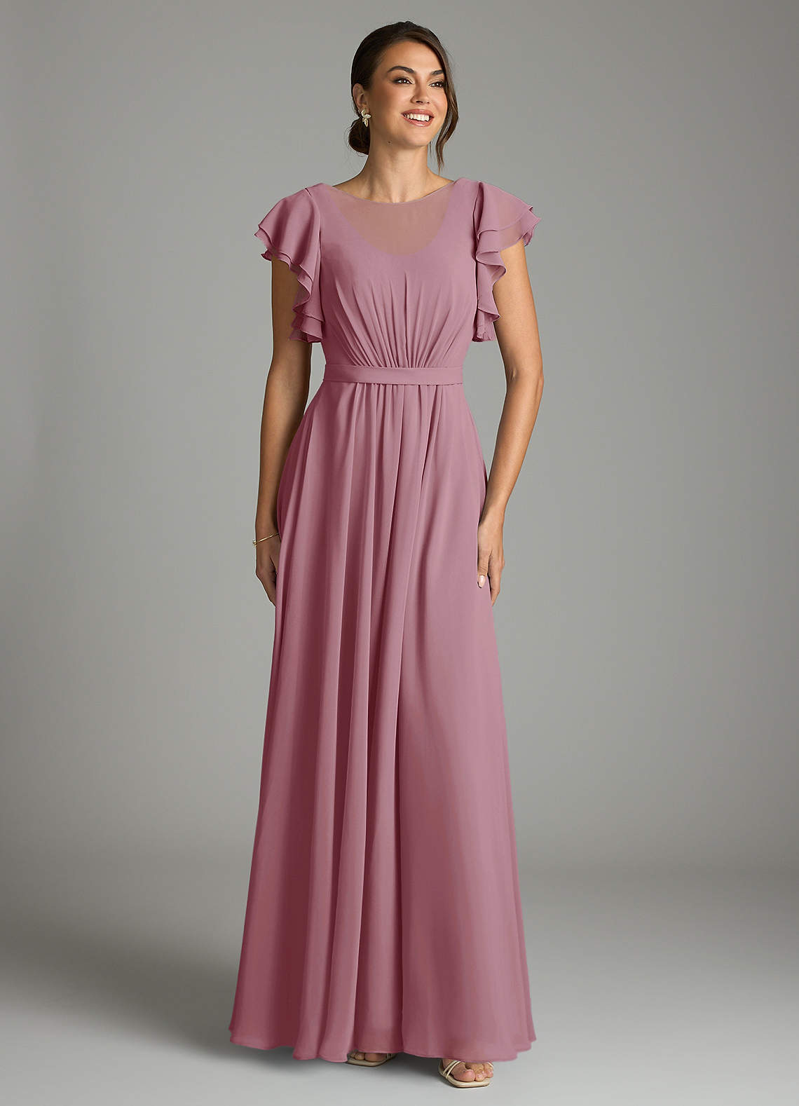 A-Line Ruffled Chiffon Floor-Length Dress Vintage Mauve