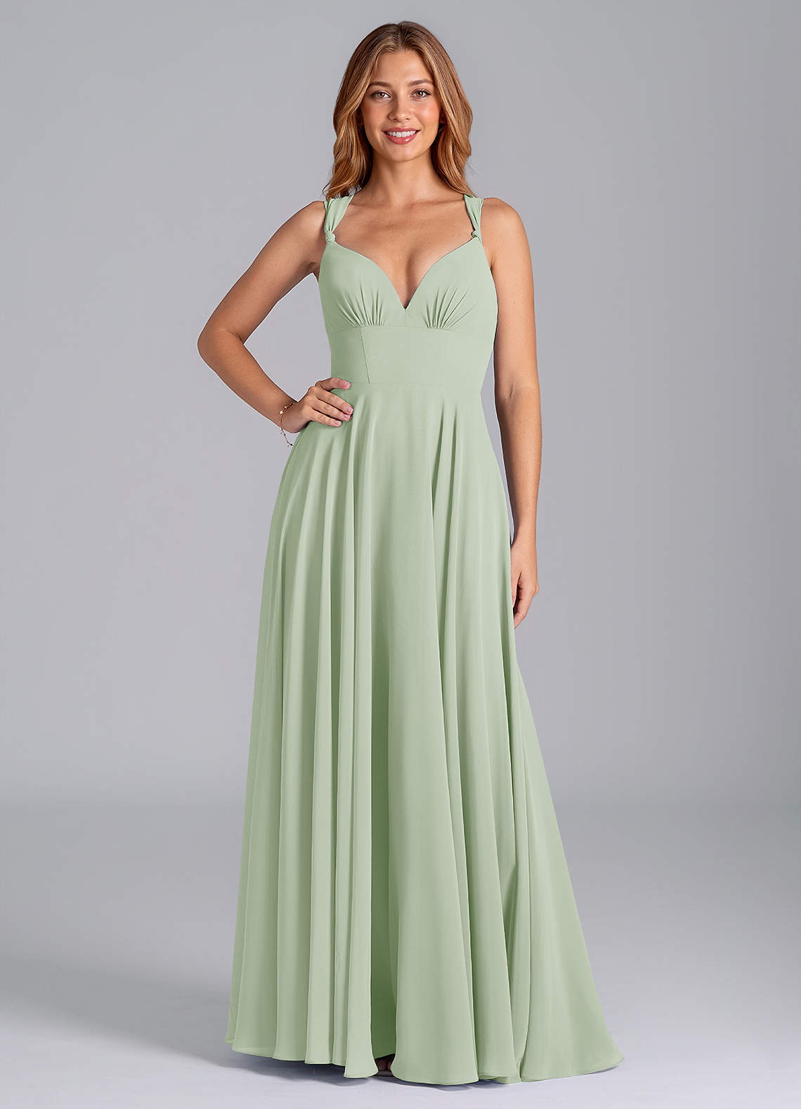Dusty Sage A-Line Corset Chiffon Dress