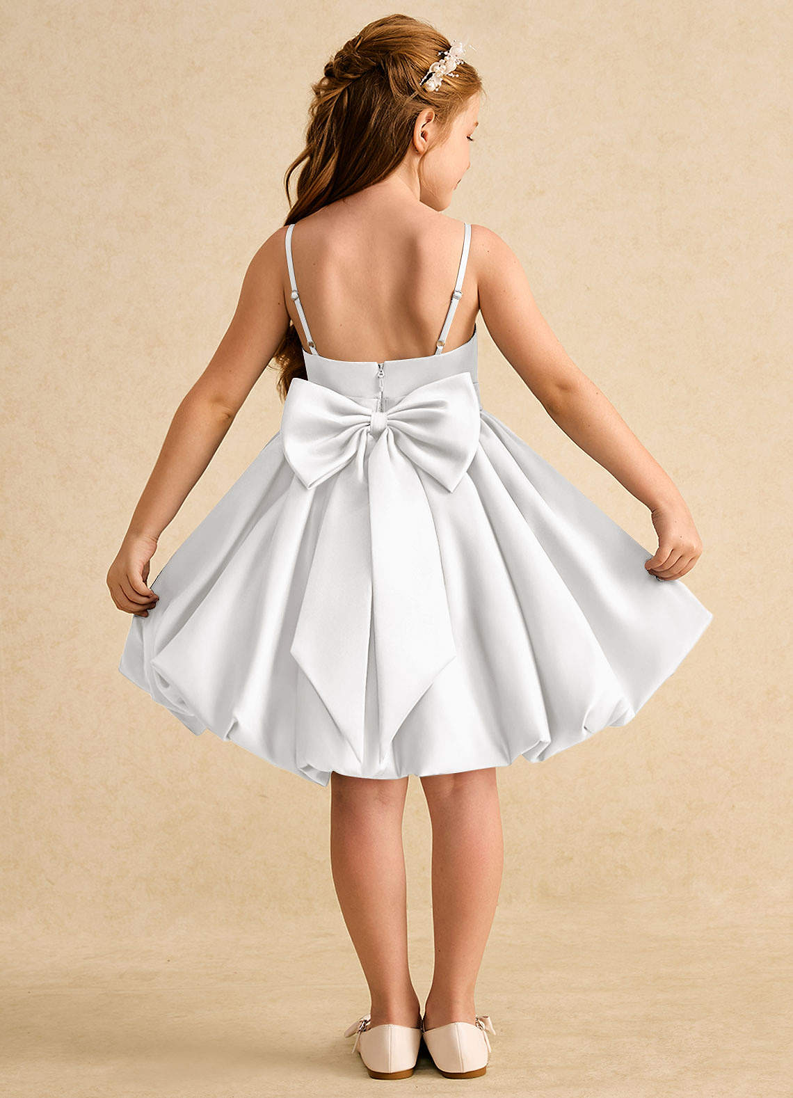 White A-Line Spaghetti Strap Matte Satin Dress